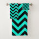 Retro Turquoise Black Stripes Art Deco Bath Towel Set