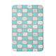 This Retro Turquoise and White Starbursts Bath Mat is so adorably space age you won’t be able to contain your enthusiasm. And, why would you want to? This 1960’s mid century modern inspired design features a dark heather grey background and rows of perfectly imperfect rectangles in turquoise, white, and dove grey. Kitschy white and turquoise starbursts are placed in randomly selected rectangles. This mod pattern will make you feel like you jumped in a time machine and set the dial for irresistibly vintage!