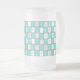 This Retro Turquoise and White Starbursts Frosted Glass Mug is so adorably space age you won’t be able to contain your enthusiasm. And, why would you want to? This 1960’s mid century modern inspired design features a dark heather grey background and rows of perfectly imperfect rectangles in turquoise, white, and dove grey. Kitschy white and turquoise starbursts are placed in randomly selected rectangles. This mod pattern will make you feel like you jumped in a time machine and set the dial for irresistibly vintage!