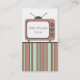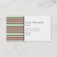 A set of 100 business cards featuring an illustration of a retro tv set in mauve on front. Green, grey, and mauve striped design under tv set. Personalise with your name and title on TV screen. Opposite side features striped designon left side. Personalise the grey text at right with your contact information.