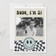 Cool and fun kid's Retro theme 2nd birthday party invitation featuring Cool retro styles with checked pattern and happy faceThe text says "Growing Up Two Fast." Perfect for a boy's birthday party.