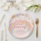 Retro Two Groovy Girl Rainbow 2nd Birthday Paper Plate