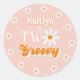 Retro Two Groovy Girls 2nd Birthday Classic Round Sticker