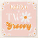 Retro Two Groovy Girls 2nd Birthday Square Paper Coaster