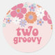 Retro Two Groovy Pink Floral Classic Round Sticker