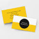 Retro styling highlights this custom business card design in two-tone colour block. Colours include vibrant deep yellow and white with contrasting black circular frame surrounding your text. This versatile design is a wonderful choice for many professions. Personalise the text template on both sides of this card with your details.