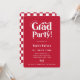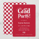Retro Type Graduation Party Invitation. Features, retro typography in white with red background and matching chequered pattern backing.