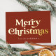 Stylish, trendy holiday card displaying "Merry Christmas" on the front in retro gold foil lettering with a brown background. Personalise the front of the non-photo holiday card by adding your name/business name, the year, or other custom text. The back of the gold foil holiday card features your custom message in white lettering. Designed to coordinate with our Retro Typography Christmas card collection.