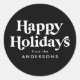Retro Typography Black and White Happy Holidays Classic Round Sticker