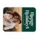 Modern holiday photo magnet featuring "Happy Holidays" at the top in white, retro-style lettering with a green background. Personalise the modern holiday magnet with your name and photo. Designed to coordinate with our Retro Typography holiday collection.