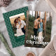 Stylish, trendy holiday card displaying your full-bleed photo with "Merry Christmas" in a white, retro style font overlay. Personalise the front of the holiday photo card by adding your name/business name, the year, or other custom text. The card reverses to feature a second photo and your custom message with a green & white semicircle patterned background.