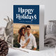 Retro Typography Navy Happy Holidays Photo Holiday Card