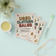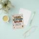 A vintage-inspired advertising flyer for a used clothes sales featuring bold retro typography, colorful graphic elements and illustrated clothing items like floral dress, shirts, and jacket in warm tones.