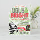 Personalise this retro & funny red, green & white Ugly Sweater Christmas party invitation, in a trendy arch shape, with a cute bewildered black and white vintage Santa Claus, marquee lights and sweater typography that says, "May All Your Sweaters Be UGLY & Bright"! Easily customise the wording to make it your own ♥ Design lovingly created by Fig and Lily Studios