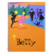 This Customisable Retro Urban Rooftop Party Spiral Notebook is intoxicating in its detail. The cartoon design features the type of wildly sophisticated cocktail party that is normally only seen in movies from the 1960s. There is a lot for the partygoers to take in. From the comfort of a penthouse apartment, guests are enjoying the view and the ambiance. The lighting sets the mood and we are able to see the darkened silhouettes of an attractive couple dancing the cha-cha. On the floor, there is a purple, portable, record player at the feet of the dancing couple. Several albums have been scattered nearby. Even with the dimmed lighting that makes practically everything in the room appear in shades of purple, blue and black, we can tell that everyone is dressed to the nines. Behind the dancing, indoor couple, there is a gentleman in a black suit holding a martini glass. He is talking to a dark haired beauty who is standing near one of the floor to ceiling glass walls. From a lampstand, a single bulb is casting a romantic glow on the scene. The only thing missing is the lampshade. Hmm... Where is the shade? It's on the head of a tipsy man who has taken the party outside to the orange rooftop. He's clearly got some fine dance moves and he isn't afraid to show them to the world! His companion is a shapely, blonde woman in a bright pink dress. Her back is arched as she throws back her martini in an uninhibited fashion. Beyond the party, there is a breathtaking teal skyline, complete with skyscrapers and a purple sky. Personalise for a one of a kind gift. If this is how the other half lives, sign me up!