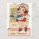 Cute image of a vintage Valentines Day card, featuring an adorable girl dressed as a maid.