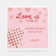 Add a groovy touch to your bridal shower table with these retro-inspired custom paper napkins. Featuring a soft pink background with red and pink chequered hearts and the phrase “Love is in the Air,” these napkins bring vintage charm and playful elegance to your celebration. Personalised with the bride’s name and bridal shower date, they’re the perfect detail to tie your party décor together. Whether you’re planning a retro bridal shower, a Valentine’s celebration, or a love-themed wedding, these stylish napkins make your table setup unforgettable while keeping the vibe fun, chic, and personalised.