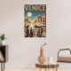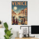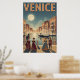 What makes this poster special is its evocative storytelling. It's more than just a picture of Venice; it's a mood. The artwork invites you into a moonlit world where graceful gondolas glide silently along shimmering canals. The city's timeless architecture—with its warm terracotta walls and arched windows—is bathed in a soft, evening glow. Look closer, and you’ll see mysterious, masked figures, hinting at a secret masquerade and the festive spirit that is the soul of Venice. This piece doesn't just show you Venice; it makes you feel it—the mystery, the romance, and the timeless elegance of "La Serenissima." This poster is a perfect piece of art for anyone who dreams of travel, a lover of vintage aesthetics, or someone who wants to bring a piece of Italian romance into their home.