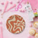 Retro Vibe Liquid Swirl Abstract Pattern Orange Paper Plate