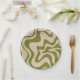 Retro Vibe Liquid Swirl Pattern in Olive Green Paper Plate
