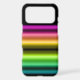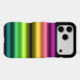 Nostalgic VCR-esque striping in a glowing rainbow gradient on a black contrast.