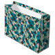 This mid-century modern pattern features turquoise and green geometric shapes.