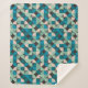 This mid-century modern pattern features turquoise and green geometric shapes.