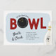 Cute and creative bowling alley rehearsal dinner invitations with gold foil accents feature "let the good times bowl" across the top in retro lettering with a bowling ball in place of the letter "O". Personalise with your bowling theme rehearsal dinner details beneath. The date and time appear on a vintage style bowling pin at the right.