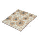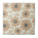 A unique retro vintage ceramic tile with an elegant brown floral pattern, combining botanical and cottagecore style for earthy, trendy garden or autumn decor.