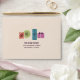 Created to coordinate with the "Vintage Christmas Tree" holiday card collection, this whimsical envelope features Christmas presents in a variety of colors and patterns. Beneath the fun illustration is space for the card recipient's name and address. There is space on the back flap for the customer's address. The inside of the envelope features a coordinating pattern that resembles a Christmas tree decorated with colorful dot "ornaments"... Be sure to check out the coordinating return address label to complete the look!