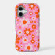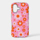 Cool retro 60s 70s vintage floral daisy pattern design in orange and pink. Simple groovy hippie style simple flower daisy pattern. Original artwork by artist Catherine Sweetman