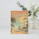 A nostalgic and vintage-inspired illustration of a charming pastel-coloured house nestled amidst tall palm trees in Key West, Florida. The house features a spacious porch with white railings and a welcoming front door. The sky is a clear and sunny blue, with fluffy white clouds. The overall atmosphere is peaceful and relaxing, evoking a sense of retro charm .