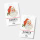 Personalised name badge with a festive retro picture. Jolly old Santa Claus with his red rosy cheeks and warm friendly smile. A bit of old school nostalgia for the old timers, this image brings backs memories of the celebrations from Christmas past.