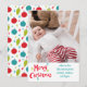 This photo holiday card is perfect for showing off a favourite square-shaped picture. It features my fun hand-lettered "Merry Christmas" message in a retro style and is ready to be personalised with your own text next to it. The reverse side has a coordinating pattern of vintage Christmas ornaments.