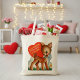 This tote bag features a mid-century illustration of an adorable deer in front of a big red heart that says "Hello Valentine I think you're a Little Deer!"