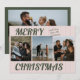 Retro Vintage Pink Stripes Photo Christmas Holiday Card