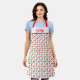 This all over print apron is decorated with a vintage inspired pattern of bright red cherries. The background is white, and the straps are in a matching shade of red. The apron can be can personalised with any name, and makes a lovely gift for a cook.