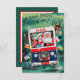 Vibrant colored letters, trees, holly and cancy canes in a cheerful message suitable for a non-religious holiday greeting. I especially liked it on the black background which made the design pop.
