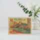 The entire image is framed by a faux-aged paper border, slightly blurred and browned at the edges, enhancing its old-world, collectable feel like something you might find in a 1950s travel shop or antique postcard album.