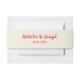A very elegant and unique hand written whimsical wedding belly band. That matches the whole wedding hand written suite theme vibe. It has bright vivid red calligraphy script with colourful cream milky background. With hand written names and date above it.