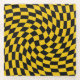Retro Warped Black Yellow Checks Chequered Glass Coaster