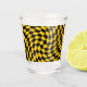 Retro Warped Black Yellow Checks Chequered Shot Glass