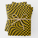 Retro Warped Black Yellow Checks Chequered Wrapping Paper Sheet