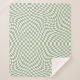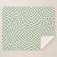 Retro Warped Sage Green White Checks Chequered Sherpa Blanket