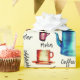 Hand painted watercolor coffee pots and cups in classy stylish vintage retro style with calligraphic handwritten script, would appeal any caffeine lover