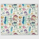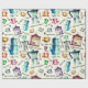 Retro Watercolor Coffee Pots Cups Pattern Wrapping Paper