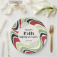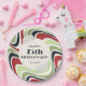 Retro flower with round frame on green, red and black wavy lines background birthday paper plate.