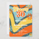 Retro inspired Groovy 30th birthday invitation with retro waves pattern, daisies and boho fonts and colours.
