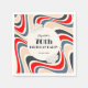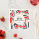 Retro flower with round frame on grey and red wavy lines background birthday napkin.