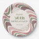 Retro Wave Flower Sage Brown Peach Birthday Paper Plate